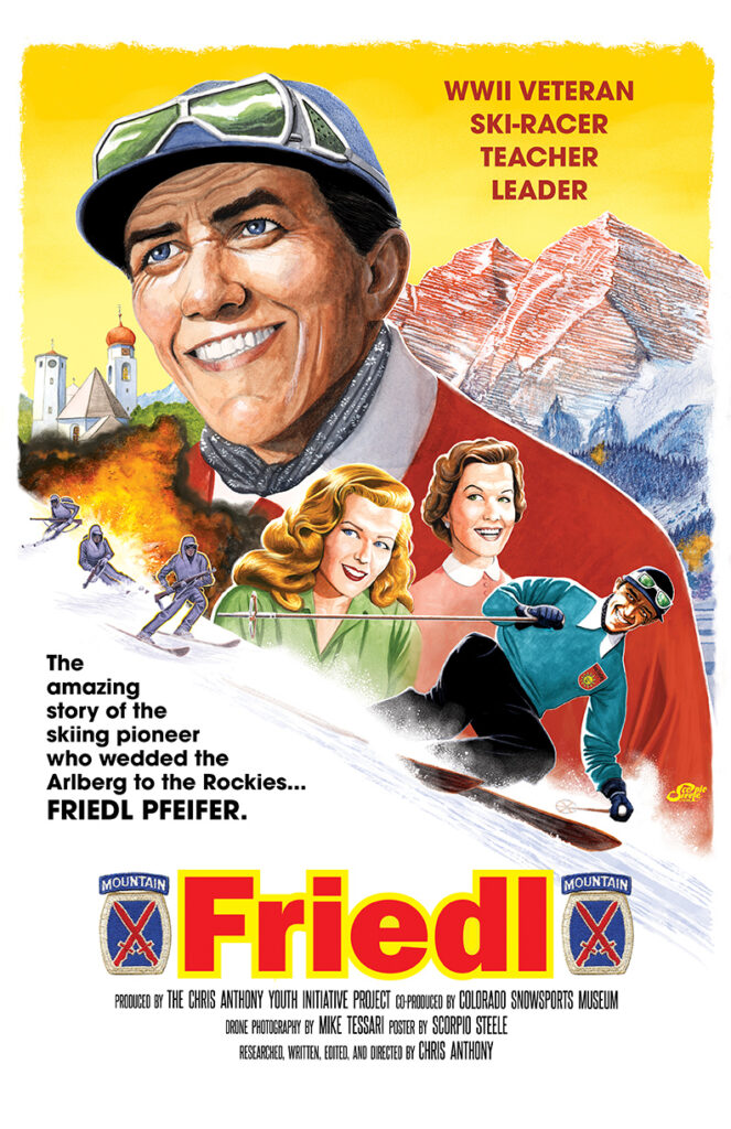 Aspen Historical Society welcomes professional skier and documentary filmmaker Chris Anthony back to the Wheeler Opera House for the Aspen premiere of Friedl, Anthony’s latest film exploring the legendary life of one of Aspen’s most influential ski pioneers, Friedl Pfeifer. While researching a sequel to his award-winning documentary, Mission Mt. Mangart, Chris uncovered the remarkable story of a daring ski race on Austria’s highest peak, the Grossglockner, which required athletes to climb to the summit starting in the middle of the night. Austrians held the race beginning in 1935, initially on wooden skis with leather boots and bindings, descending the glacier below to avoid crevasses, rocks, and cliffs rather than using gates. In 1935, the fastest skier from the summit was Friedl Pfefier, who also won a shorter version of the race in 1936. Chris quickly realized this was the same Friedl Pfeifer whose statue stands at the base of Ajax: Pfeifer escaped the Nazi regime, immigrated to the United States, led the Sun Valley Ski School, served in the 10th Mountain Division, and later helped create Aspen Skiing Corporation. The film explores this sweeping story, followed by a conversation with Colorado Snow Sports Hall of Fame inductee Chris Anthony.